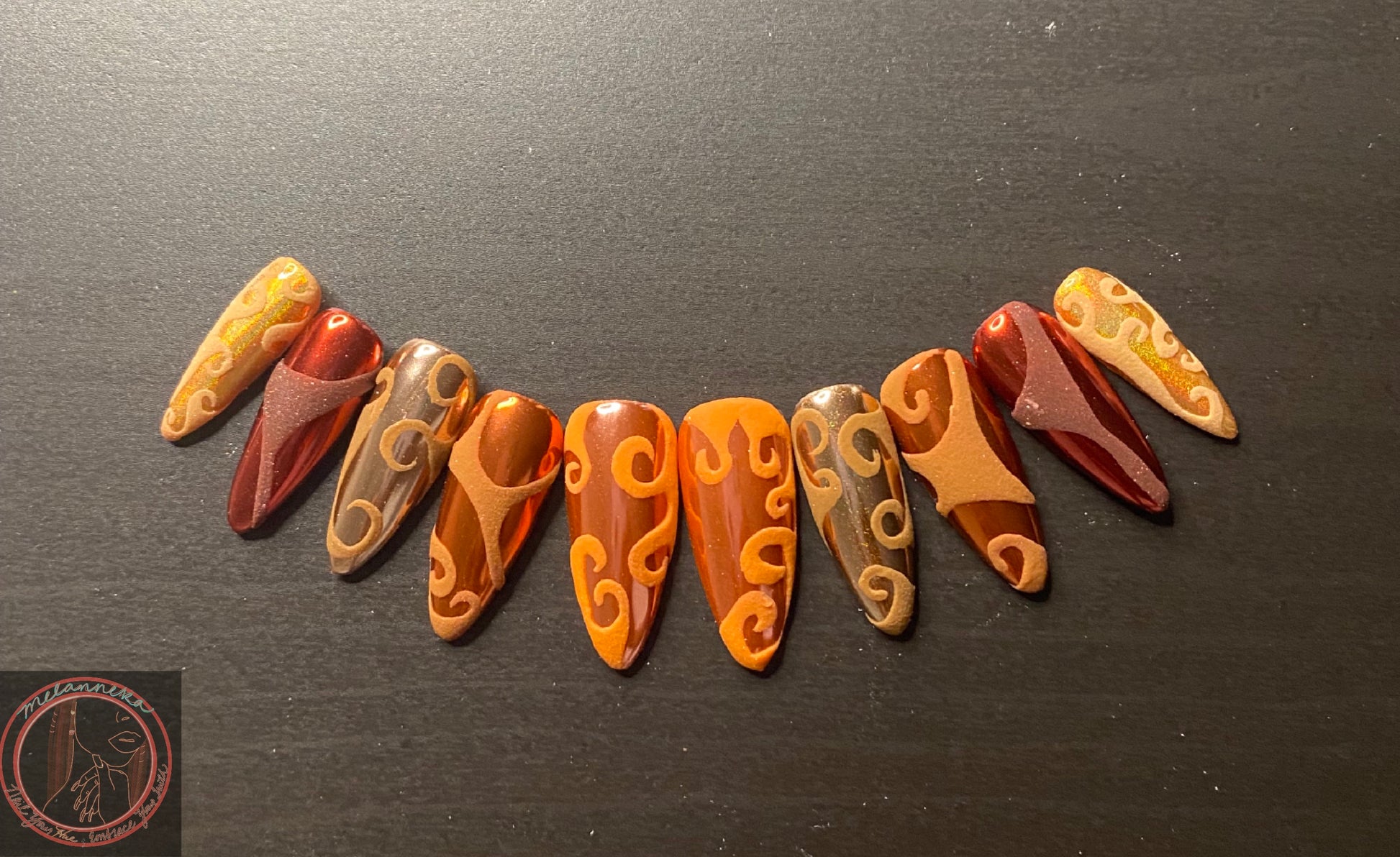 Experience the beauty of fall with the "Rustic Elegance" press on nail set. Fall in love with the warm hues and elegant design. Achieve a gorgeous look without the hassle of salon visits. Make a statement with ease and enjoy the season with these stunning nails!